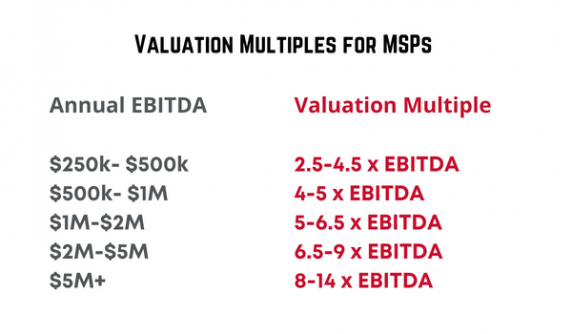MSP valuations are typically a multiple of the 12-month trailing EBITDA considering the metrics and other business factors discussed in this article.